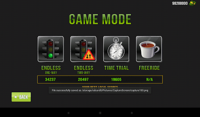 Der erste Eindruck war recht ordentlich, die Steuerung ist optimal, kein ruckeln oder hängen und das Ziel besteht darin soweit und dabei so schnell wie möglich zu fahren. Man darf natürlich in keine anderen Autos Crashen. Für die Geschwindigkeit, die Entfernung und das sehr nahe vorbeifahren an den anderen Autos gibt es extra Punkte.